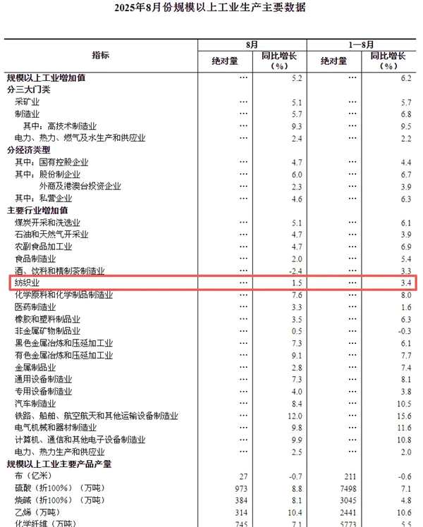 分三大门类看,8月份,采矿业增加值同比增长5.1%,制造业增长5.7%,电力、热力、燃气及水生产和供应业增长2.4%。