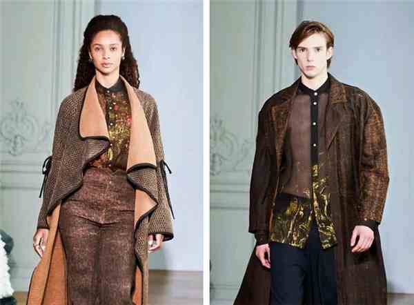 如月设计凭借“移动的归属”主题,精选羊毛羊绒、有机棉麻等高端天然时装面料,以大地色系为基底,点缀灰绿、陶土红等低饱和有彩色,传递宁静安稳的氛围;立体压褶、面料再造、可转换设计等工艺,让服装兼具雕塑感与实用性。从廓形大衣、可拆卸皮草外套,到职场旅行两用套装,如月设计覆盖多元场景,精准对接不同客群偏好。