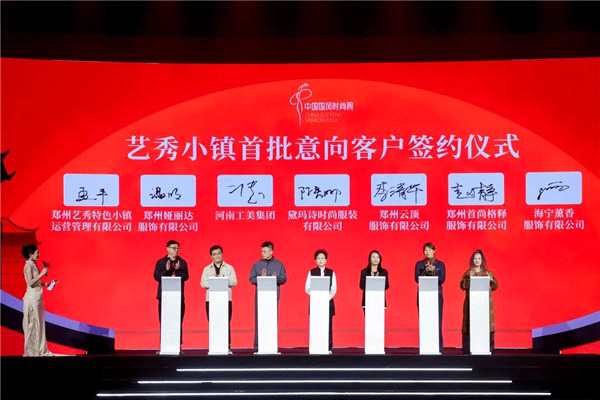 随后举行的艺秀小镇首批意向客户签约仪式中,郑州艺秀特色小镇运营管理有限公司、郑州娅丽达服饰有限公司、河南工美集团、黛玛诗时尚服装有限公司、郑州云顶服饰有限公司、郑州首尚格释服饰有限公司、海宁薰香服饰有限公司代表上台,共同见证了“穿国风,到艺秀”从愿景走向现实的关键一步。这些企业的入驻,将为国风产业生态注入新的活力。