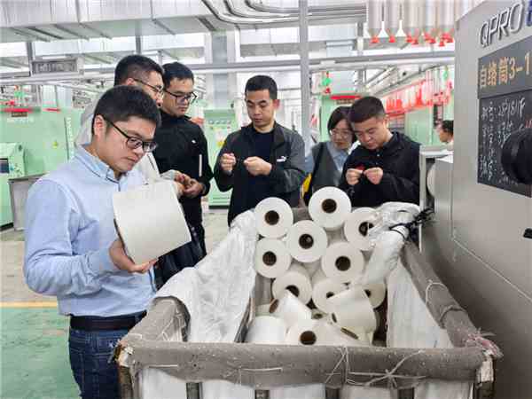 调研团来到张家港市天腾纱业有限公司,在深入考察长丝生产与加弹车间后,其成功构建的“从纺丝到纺纱”垂直一体化产业链,给调研团留下了深刻印象。