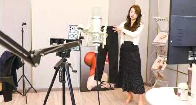 天门服装跨境电商日均出货60万件。图为主播正在直播带货。 通讯员许磊 摄