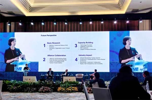 在“可持续、法规和关税”议题环节,中国纺联副会长阎岩以“可持续引领发展——中国纺织政策框架和协同行动”为题,进行了发言。在未来展望中,她呼吁,应聚焦于四个主要方面:基础研究——探索控制和减少温室气体排放的方法,并在组织层面和产品层面制定相关标准;联盟合作——通过包括参与UNFCCC FICCA工作组、实施30·60净零加速计划、加入CNTAC-LCA工作组以及推进时尚森林倡议,加强合作与行动;能力建设——致力于技术推广、数据库建设、可再生能源投资以及Scope3排放的减少;行业影响——通过举办气候管理时尚峰会、参与洲际纺织ESG/碳中和会议、与下游客户合作,以及提升供应链的透明度和可追溯性,来推动整个行业的进步与发展。 会议期间,国际纺联选举产生了新任主席及决策委员会成员。在“国际纺联管理委员会”会议上,中国纺联副会长阎岩全票通过当选新一任国际纺联副主席,并成为国际纺联历史上首任女性副主席。