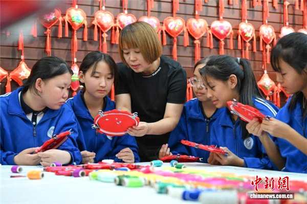 9月26日,内蒙古科右中旗,学校社团内摆满了同学们的刺绣作品。 贝赫 摄