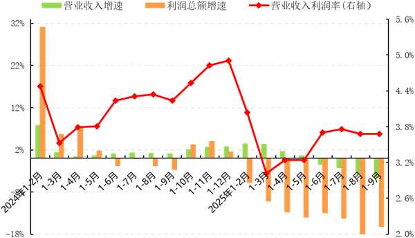 前三季度,受需求偏弱、竞争加剧、成本上涨等因素交织影响,我国服装行业运行质效严重承压,营业收入增速持续回落,利润总额大幅下降,企业盈利能力显着削弱。根据国家统计局数据,1-9月,我国服装行业规模以上(年主营业务收入2000万元及以上)企业13673家,实现营业收入8685.18亿元,同比下降4.63%,增速比2024年同期下滑5.65个百分点;利润总额319.23亿元,同比下降16.19%,降幅比2024年同期扩大13.57个百分点;营业收入利润率为3.68%,低于2024年同期0.51个百分点。