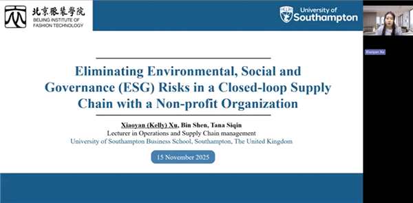 南安普顿大学运营与供应链管理讲师Dr.Xiaoyan Xu通过视频连线,分享了关于与非营利组织合作以消除闭环供应链中ESG风险的专题研究;伦敦大学金史密斯学院奢侈品管理硕士项目负责人Dr.Kelly Meng从文化可持续性视角,探讨了奢侈品行业的战略未来。