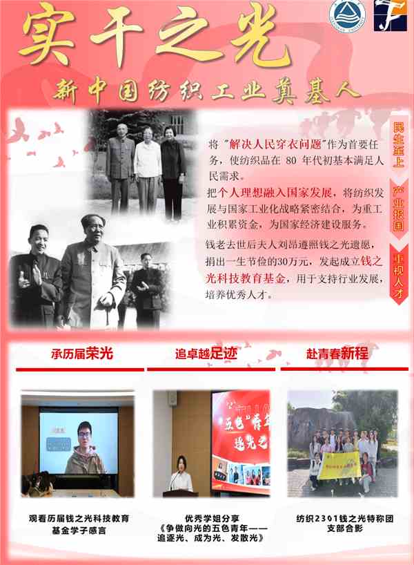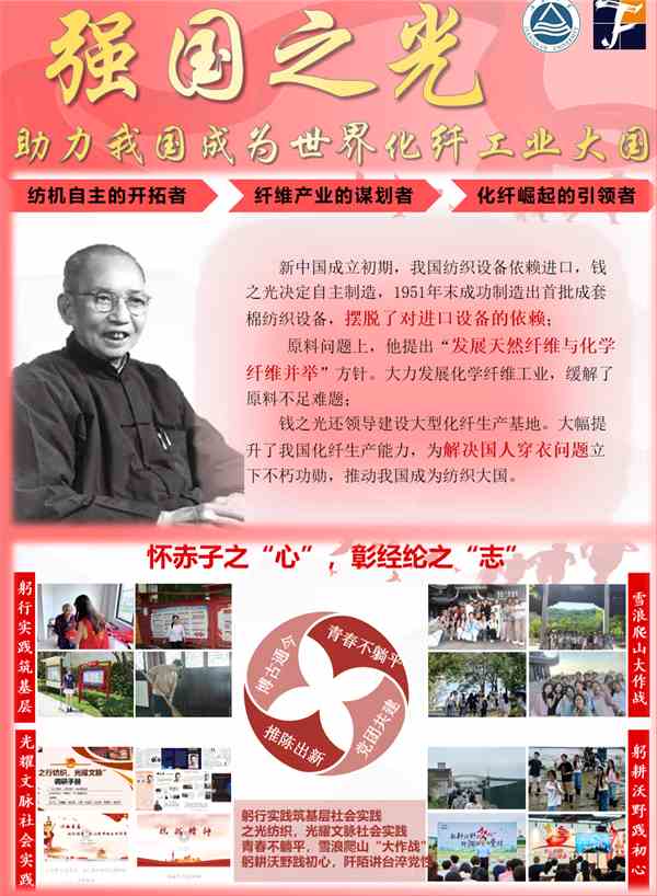 三载春秋,他们以实践为笔、以奋斗为墨,在青春画卷上写下了动人的篇章;三载躬行,他们以精神为灯、以使命为航,在成长道路上镌刻了闪光的足迹。恰逢钱之光先生诞辰125周年,让我们走进这个不平凡的团支部,聆听他们以青春名义许下的纺织强国誓言,感受那一份历久弥坚的初心与担当。
